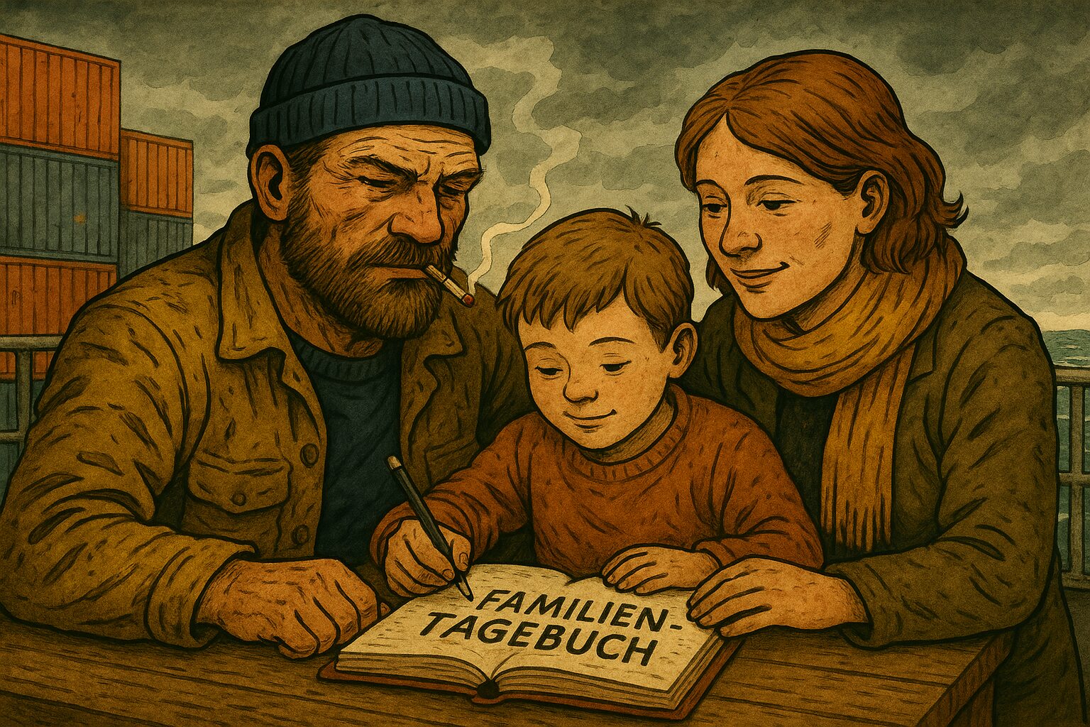 Moin, ihr Landratten und Decksarbeiter! Wer monatelang auf großer Fahrt ist, weiß: Zuhause passieren genauso viele Abenteuer wie draußen auf dem Ozean. Damit keiner von euch in Funkstille untergeht, gibt’s hier das Familien-Tagebuch von Bananenschwein.de.